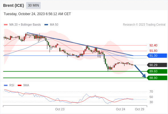 在 91.30 之下,看跌,目标价位为 89.60 ,然后为 88.90 。