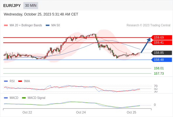 向下跌破 158.48 ,将带来继续下跌的趋势,目标位为 158.01 然后为 157.73 。