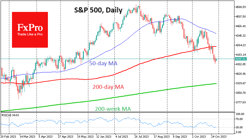 FxPro高级分析师Alex?Kuptsikevich指出:从技术面来看,在标准普尔500指数未能突破10月中旬的50日移动均线阻力位后,股市抛售加剧。随后快速回调至200日,但我们只看到了短暂的盘整,而不是反弹。