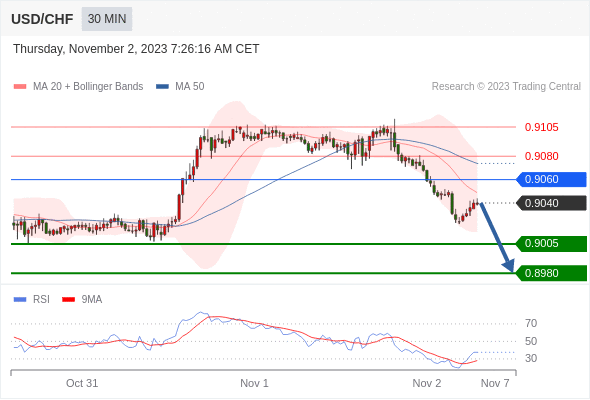 在 0.9060 之下,看跌,目标价位为 0.9005 ,然后为 0.8980 。