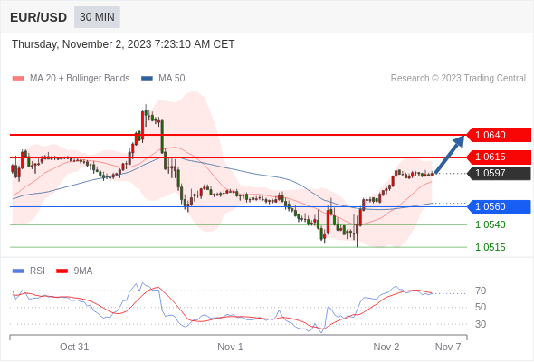 在 1.0560 之上,看涨,目标价位为 1.0615 ,然后为 1.0640 。
