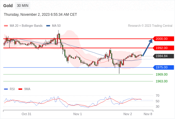 在 1975.00 之上,看涨,目标价位为 1992.00 ,然后为 2000.00 。