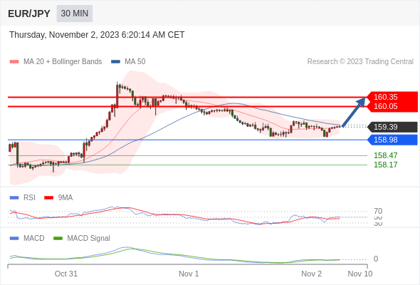 向下跌破 158.98 ,将带来继续下跌的趋势,目标位为 158.47 然后为 158.17 。