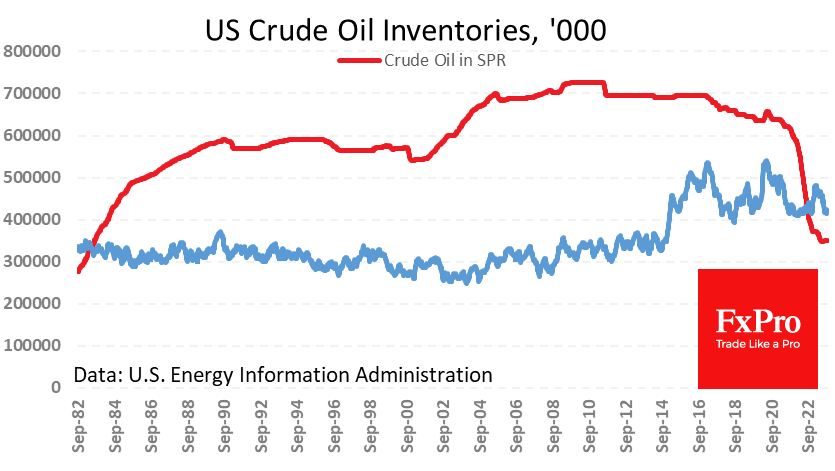 上周早些时候的一份报告显示,美国公司在过去四周维持了创纪录的每日1,320万桶的产量,但此数据保持一致而没有增加趋势。高产量数据并没有转化为库存的增加,库存以同比3.4%的速度下降至4.22亿桶,仍处于过去8年范围的低端(约4亿桶)。