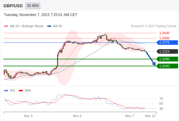 在 1.2375 之下,看跌,目标价位为 1.2280 ,然后为 1.2240 。
