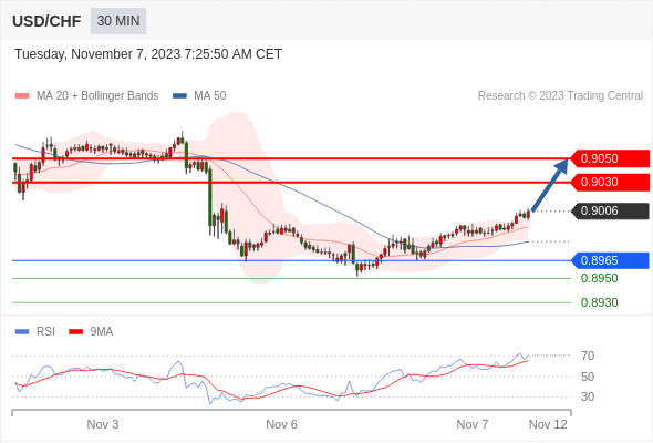 在 0.8965 之上,看涨,目标价位为 0.9030 ,然后为 0.9050 。