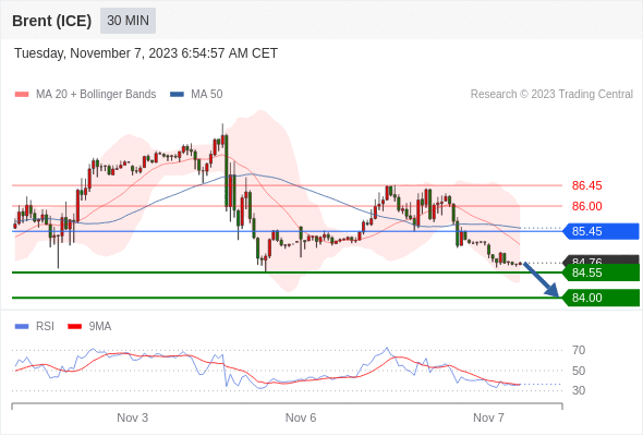 在 85.45 之下,看跌,目标价位为 84.55 ,然后为 84.00 。