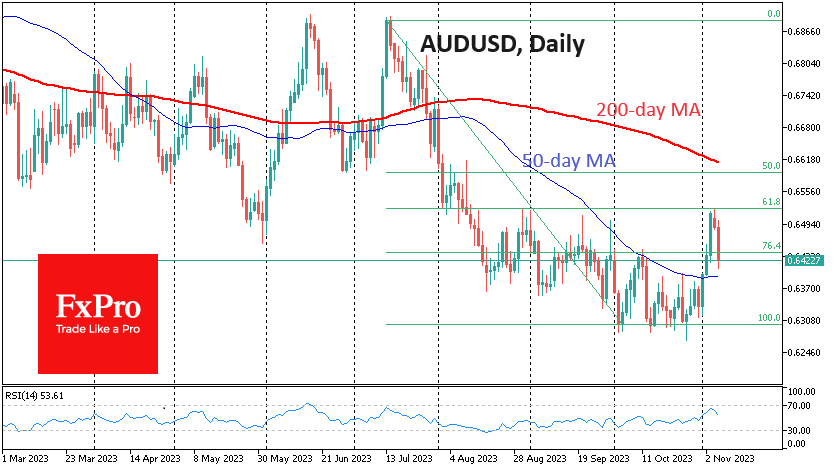FxPro高级分析师Alex Kuptsikevich指出:在澳大利亚央行决定将关键利率提高25个基点至4.35%,创下12年新高后,澳元兑美元遭遇抛售。该决定与预期一致,因此触及0.6500的水平引发了大规模抛售,致使该货币对短暂回落至0.64以下。