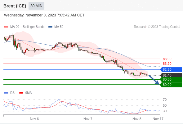 在 82.30 之下,看跌,目标价位为 80.80 ,然后为 80.00 。