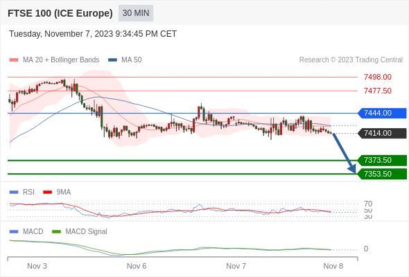 英国富时100指数期货 当日内: 看跌,在 7444.00 之下。