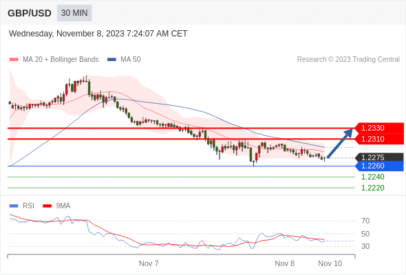 在 1.2260 之上,看涨,目标价位为 1.2310 ,然后为 1.2330 。