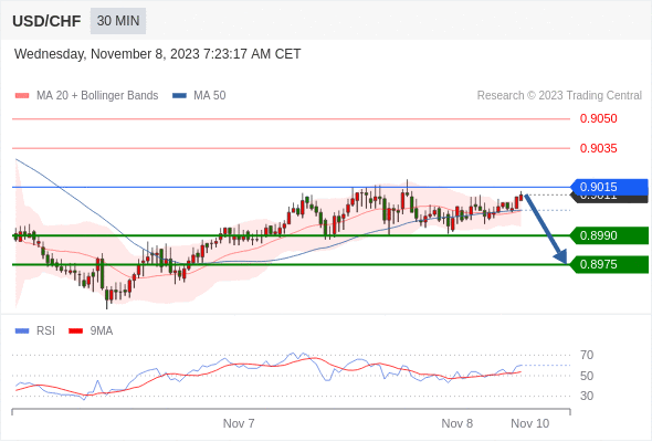 在 0.9015 之下,看跌,目标价位为 0.8990 ,然后为 0.8975 。