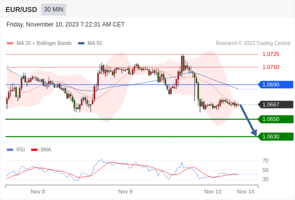在 1.0690 之下,看跌,目标价位为 1.0650 ,然后为 1.0630 。