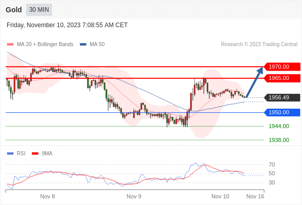 在 1950.00 之上,看涨,目标价位为 1965.00 ,然后为 1970.00 。