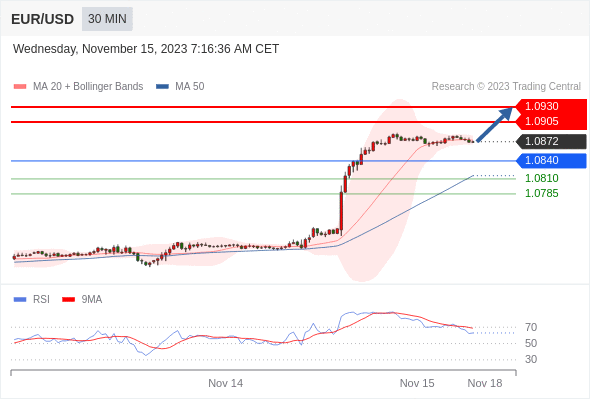 在 1.0840 之上,看涨,目标价位为 1.0905 ,然后为 1.0930 。