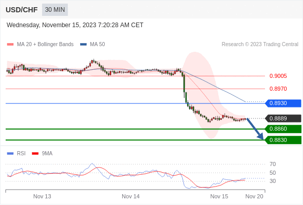 在 0.8930 之下,看跌,目标价位为 0.8860 ,然后为 0.8830 。