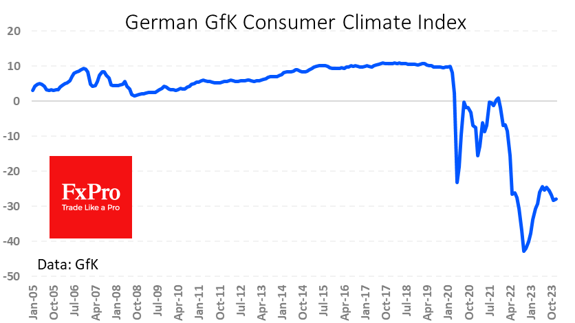 FxPro高级分析师Alex Kuptsikevich指出:去年12月,德国的商业景气指数从-28.3升至-27.8,但仍严重负增长。根据这份报告,德国人预计他们的收入会略有下降。由于根深蒂固的通胀预期,他们的消费倾向略有上升,但很难反映出消费活动的反弹。
