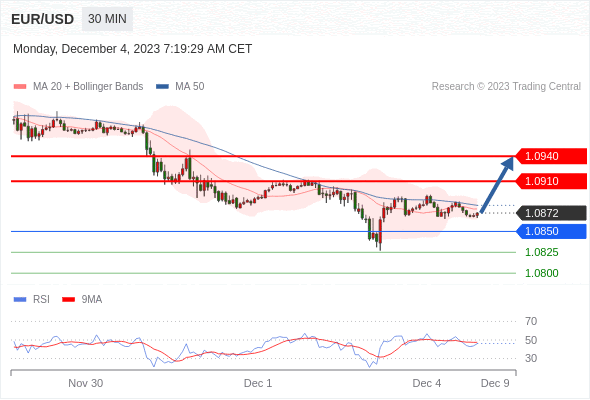 在 1.0850 之上,看涨,目标价位为 1.0910 ,然后为 1.0940 。