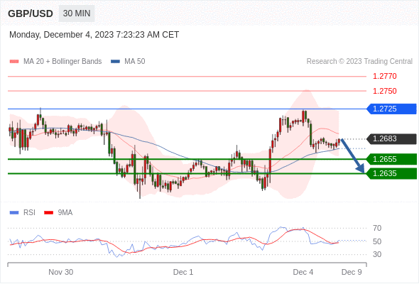 在 1.2725 之下,看跌,目标价位为 1.2655 ,然后为 1.2635 。