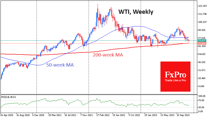 本周,卡特尔官员已经提醒我们,他们可能会延长减产协议,甚至加大减产力度。但即便如此,似乎也未能打动交易者。WTI原油价格刷新了5个月以来的低点,跌破72.40美元。在周二欧洲交易时段的高点,布伦特原油维持在略高于去年11月低点的水平。
