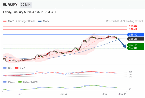 如突破 158.80 ,EUR/JPY 目标方向为 159.47 和 159.87 。