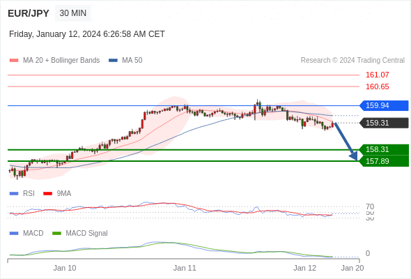 欧元/日元 当日内: 看跌,在 159.94 之下。