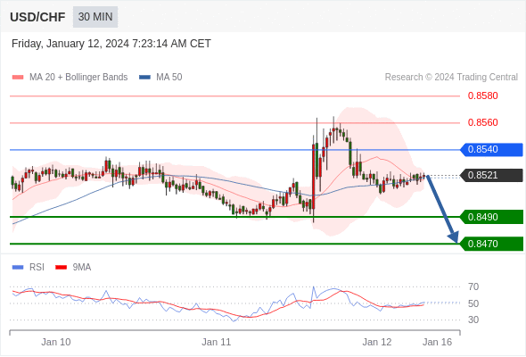 在 0.8540 之下,看跌,目标价位为 0.8490 ,然后为 0.8470 。