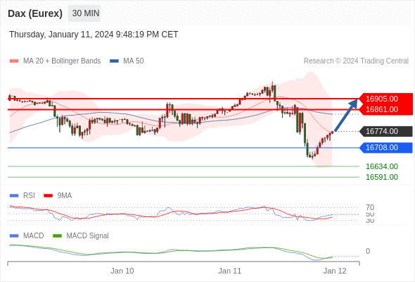 如跌破 16708 ,德国DAX指数期货 (Eurex) 目标方向定在 16634 和 16591 。