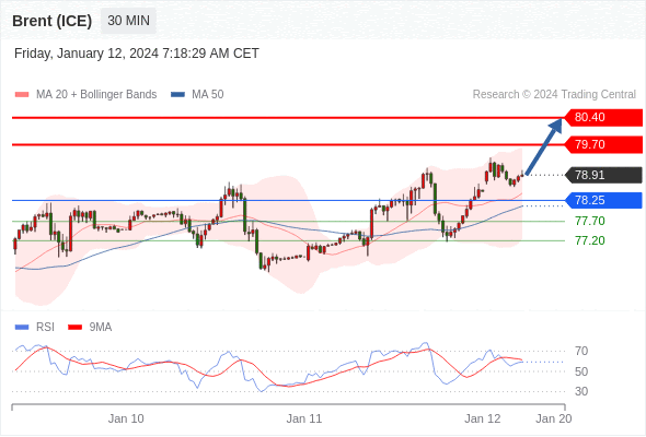 在 78.25 之上,看涨,目标价位为 79.70 ,然后为 80.40 。