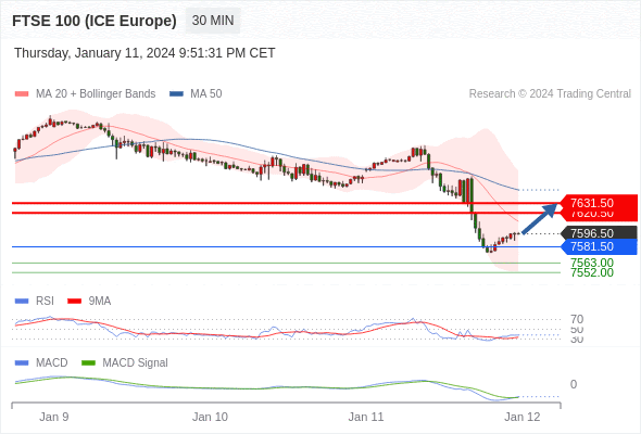 英国富时100指数期货 当日内: 有上涨的可能,目标价位定在 7631.50 。