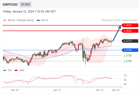在 1.2740 之上,看涨,目标价位为 1.2810 ,然后为 1.2830 。