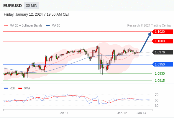 在 1.0950 之上,看涨,目标价位为 1.1000 ,然后为 1.1020 。