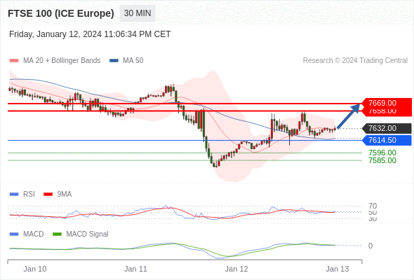 如跌破 7614.50 ,英国富时100指数期货 目标方向定在 7596 和 7585 。