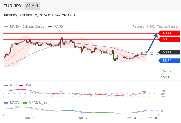 欧元/日元 当日内: 看涨,当 158.52 为支撑位。