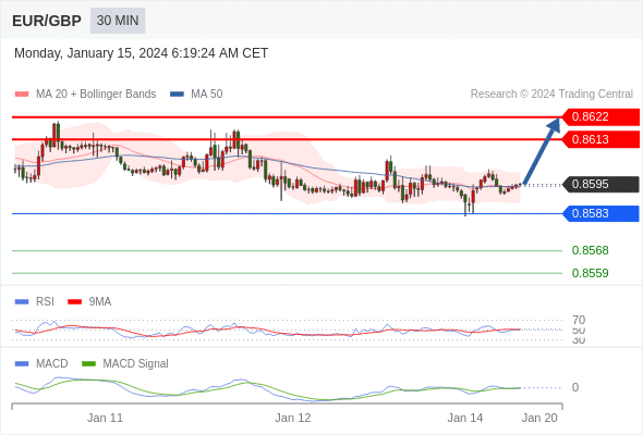 欧元/英镑 当日内: 看涨,当 0.8583 未被跌破。