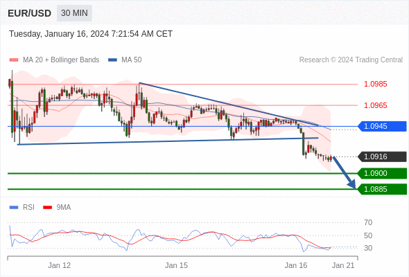 在 1.0945 之下,看跌,目标价位为 1.0900 ,然后为 1.0885 。