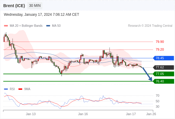 在 78.45 之下,看跌,目标价位为 77.05 ,然后为 76.40 。