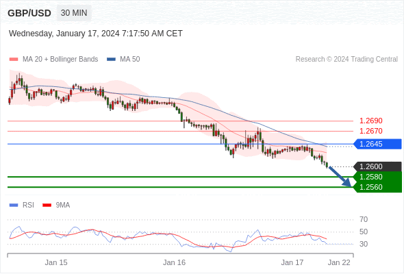 在 1.2645 之下,看跌,目标价位为 1.2580 ,然后为 1.2560 。
