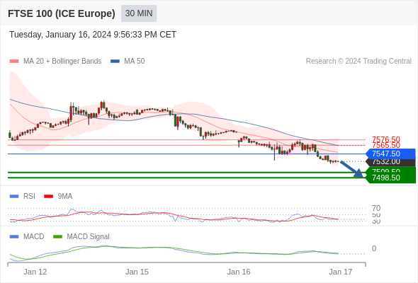 英国富时100指数期货 当日内: 看跌,在 7547.50 之下。