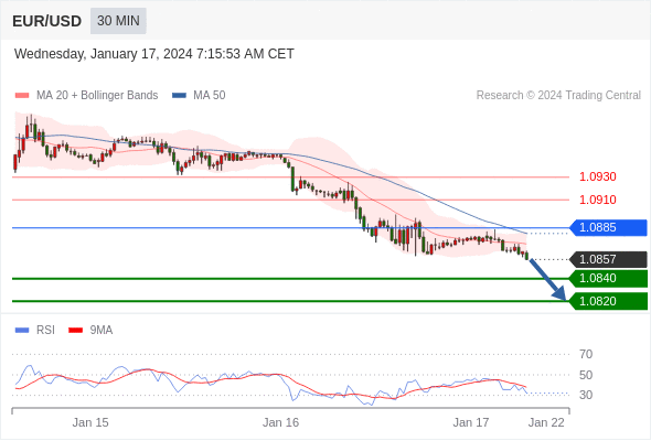 在 1.0885 之下,看跌,目标价位为 1.0840 ,然后为 1.0820 。