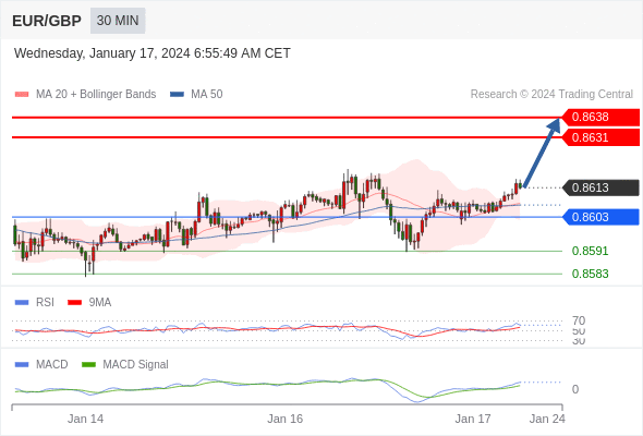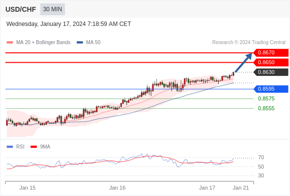 在 0.8595 之上,看涨,目标价位为 0.8650 ,然后为 0.8670 。