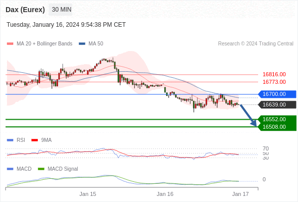 如突破 16700 ,德国DAX指数期货 (Eurex) 目标方向为 16773 和 16816 。