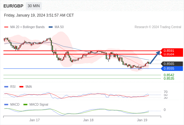欧元/英镑 当日内: 有上涨的可能,目标价位定在 0.8591 。