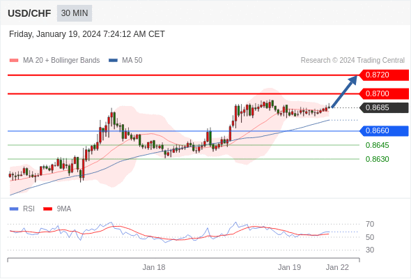 在 0.8660 之上,看涨,目标价位为 0.8700 ,然后为 0.8720 。