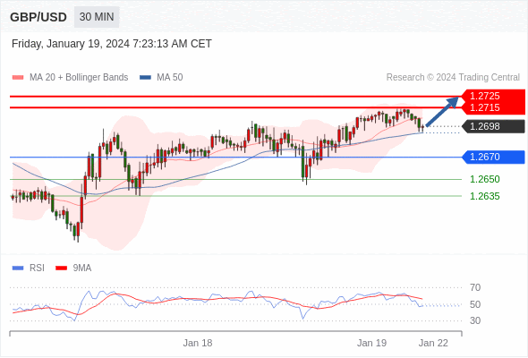 在 1.2670 之上,看涨,目标价位为 1.2715 ,然后为 1.2725 。