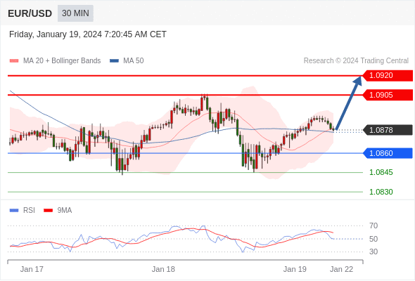 在 1.0860 之上,看涨,目标价位为 1.0905 ,然后为 1.0920 。