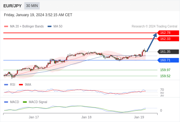 欧元/日元 当日内: 看涨,当 160.71 为支撑位。