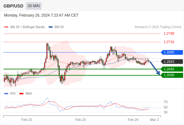 在 1.2685 之下,看跌,目标价位为 1.2645 ,然后为 1.2630 。