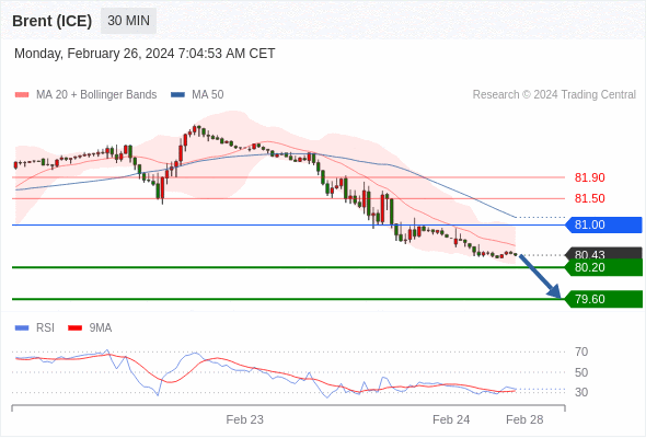 在 81.00 之下,看跌,目标价位为 80.20 ,然后为 79.60 。
