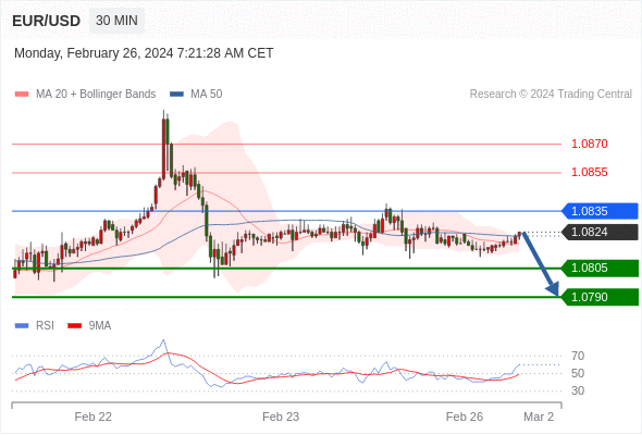在 1.0835 之下,看跌,目标价位为 1.0805 ,然后为 1.0790 。